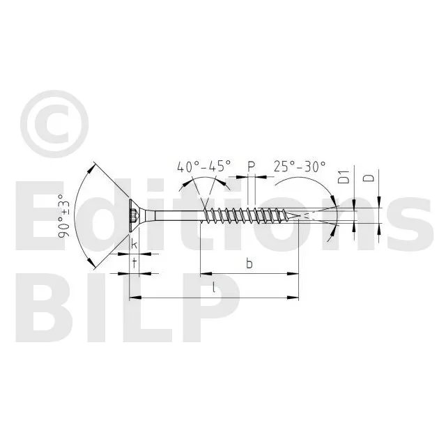 Vis à bois à tête fraisée - empreinte TX - INOX - filet partiel - Réf. 91353504502