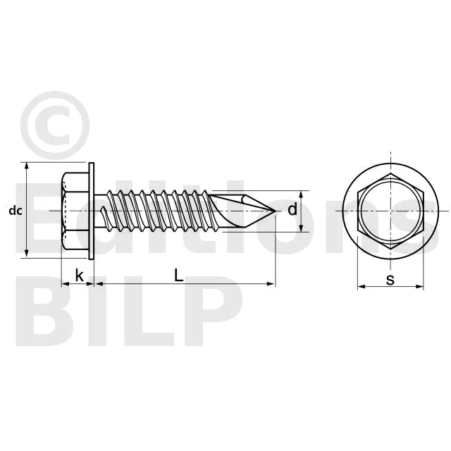 Vis autoperceuse à tête hexagonale à embase plate INOX - Réf. 75044202503