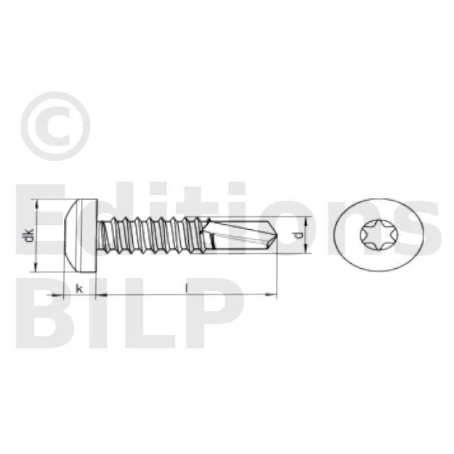 Vis autoperceuse à tête cylindrique bombée large empreinte TX INOX - Réf. 91664201902