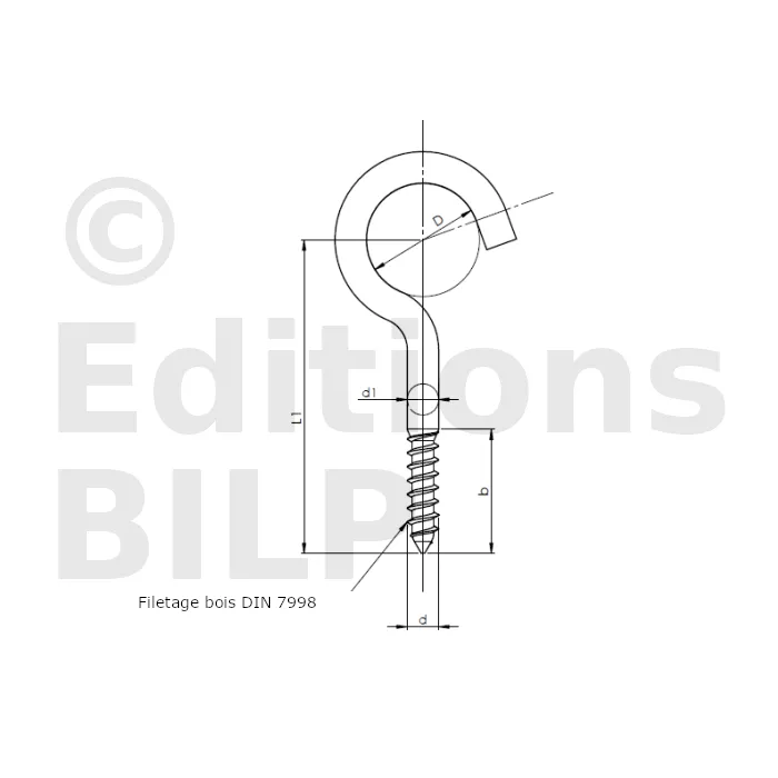 Piton ouvert à filetage bois - Réf. 07060406002