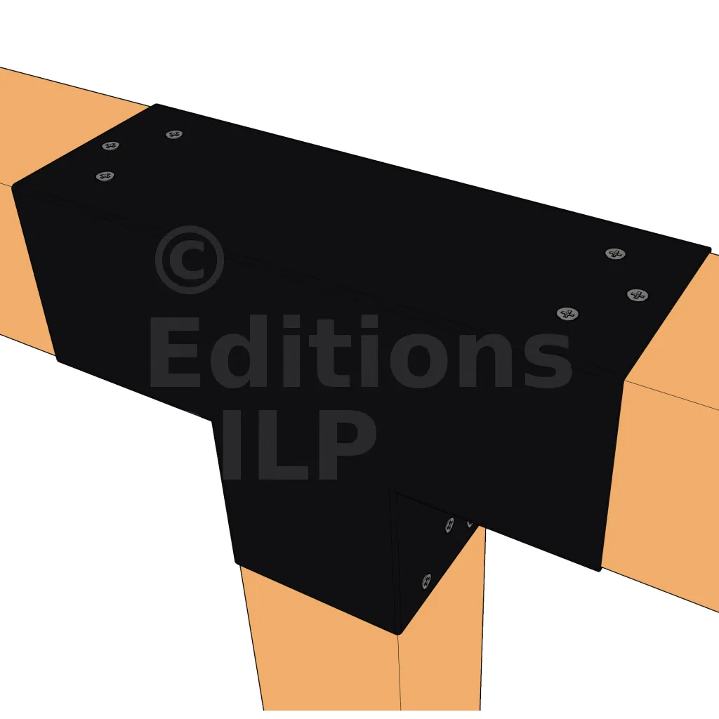 Il sert à raccorder une poutre de 90x90mm perpendiculairement à une autre poutre de 90x90mm, SANS être soutenu par un poteau vertical.
