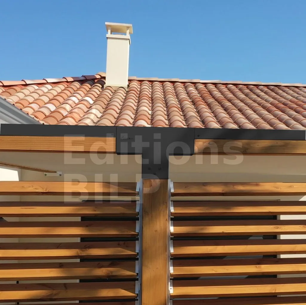 Il permet également la connexion d’une longue poutre de 90x90mm à un poteau intermédiaire de 90x90mm.