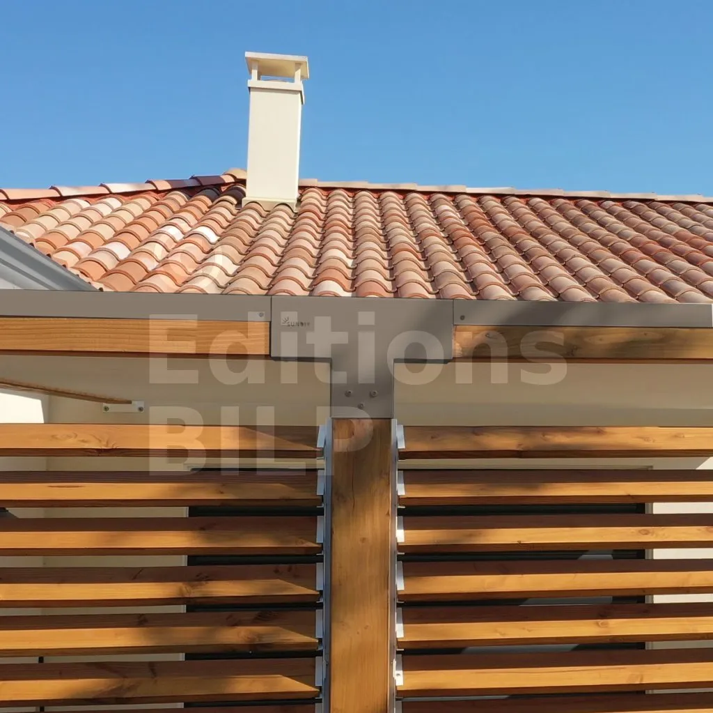 Il permet également la connexion d’une longue poutre de 90x90mm à un poteau intermédiaire de 90x90mm.