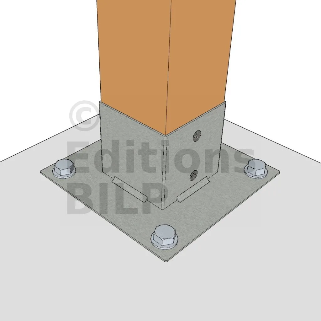 Il permet la fixation des poteaux sur une dalle ou un plot en béton.