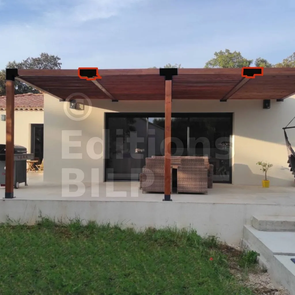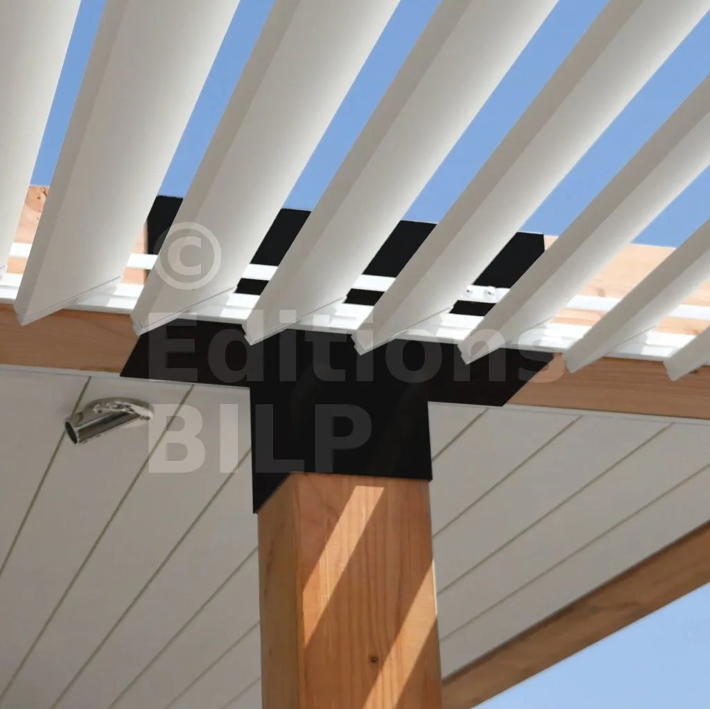 Il permet également la connexion d’une longue poutre de 120x120mm à un poteau intermédiaire de 120x120mm.