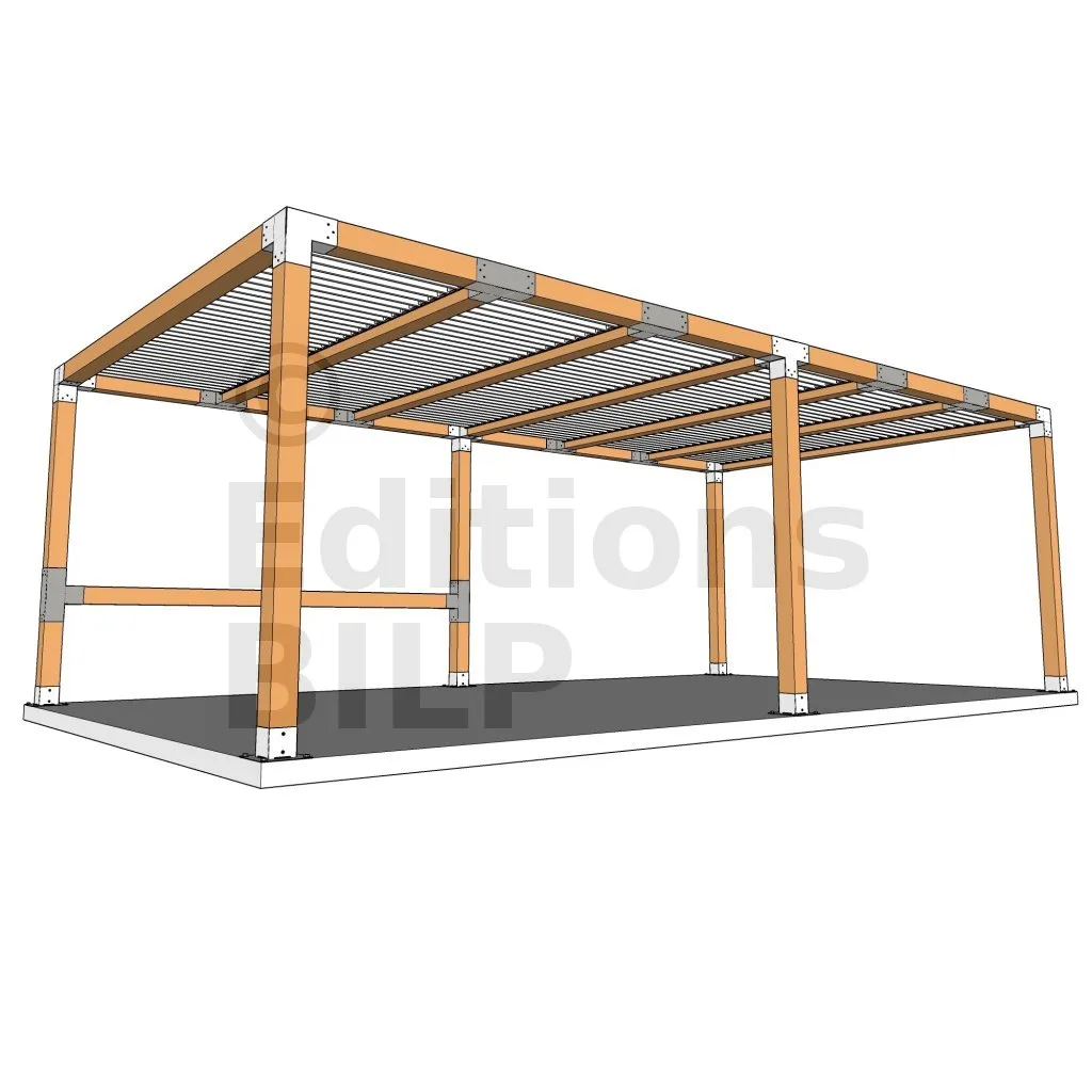 Il permet également la connexion d’une longue poutre de 120x120mm à un poteau intermédiaire de 120x120mm.
