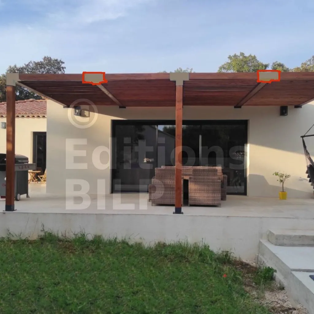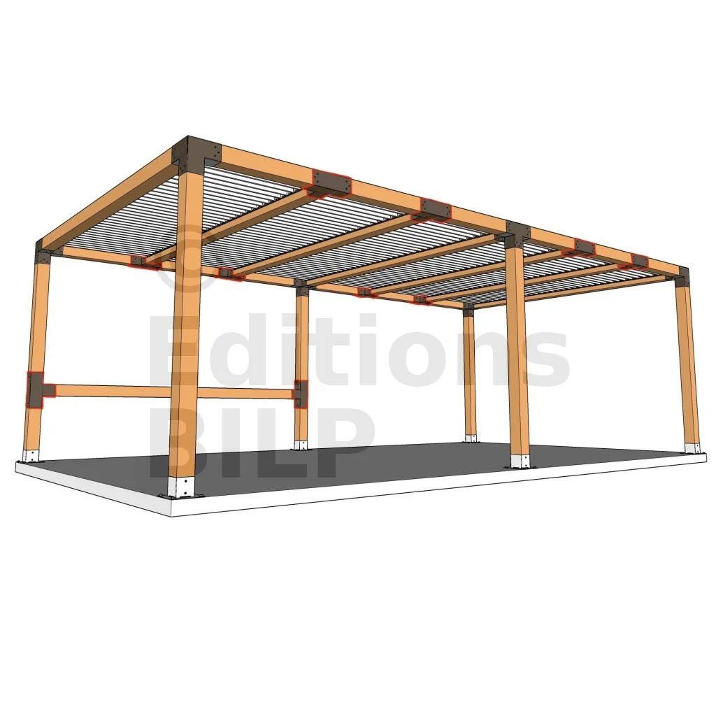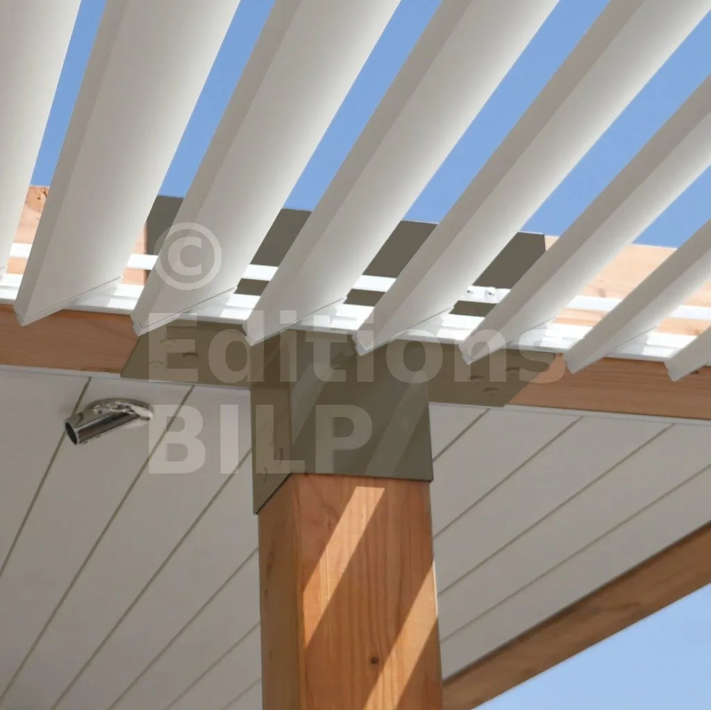 Il permet également la connexion d’une longue poutre de 120x120mm à un poteau intermédiaire de 120x120mm.