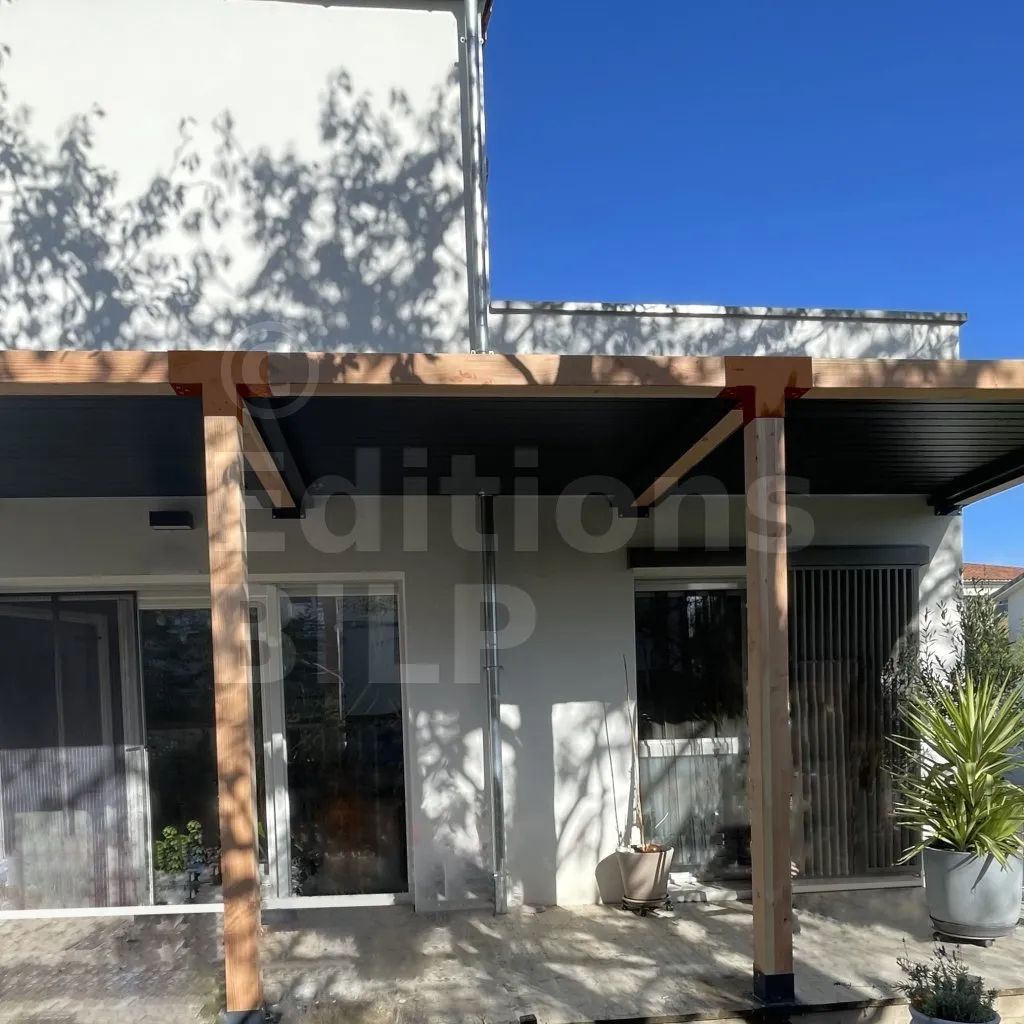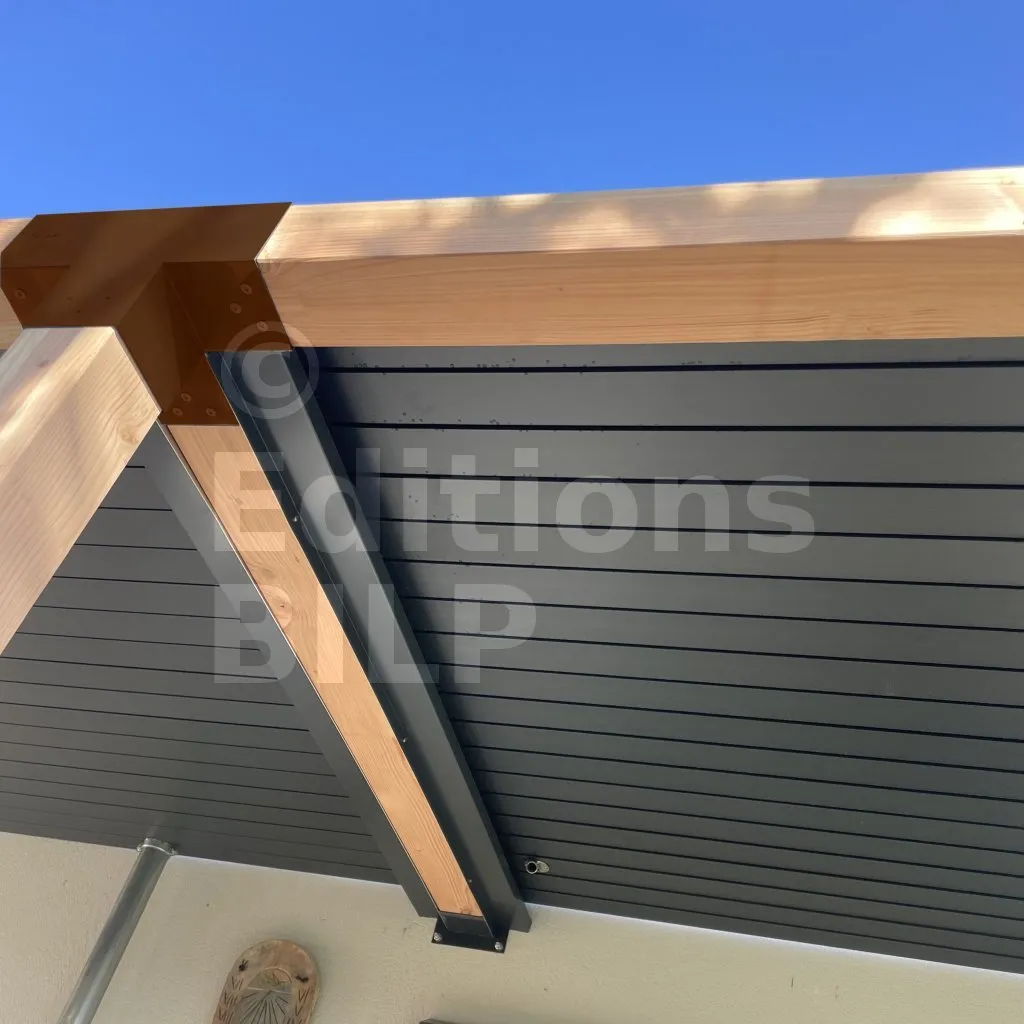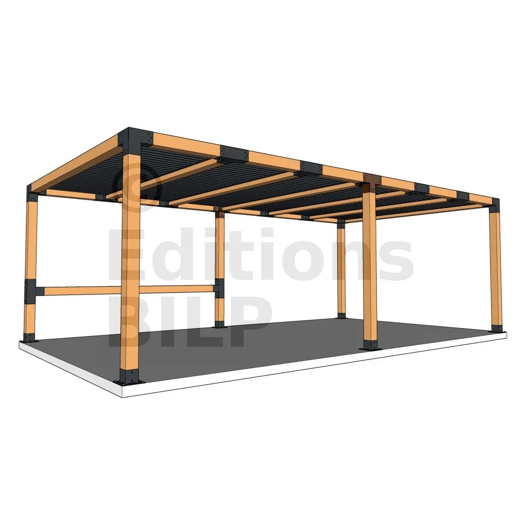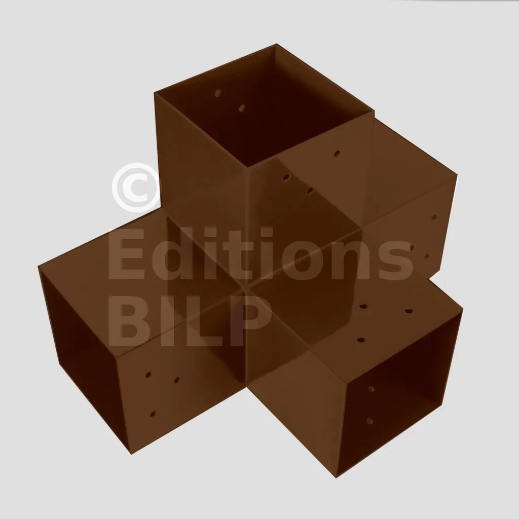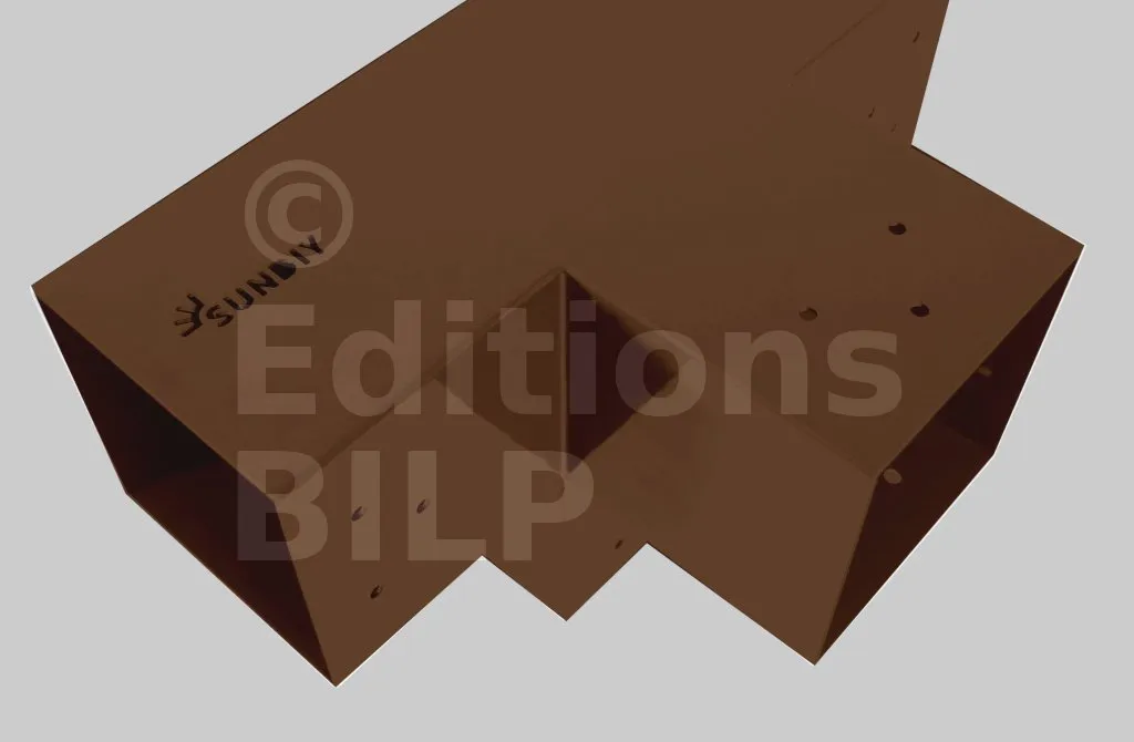 Il permet de raccorder une poutre de 120x120mm perpendiculairement à un chevron de 120x120mm, le tout étant supporté par un poteau vertical de 120x120mm.