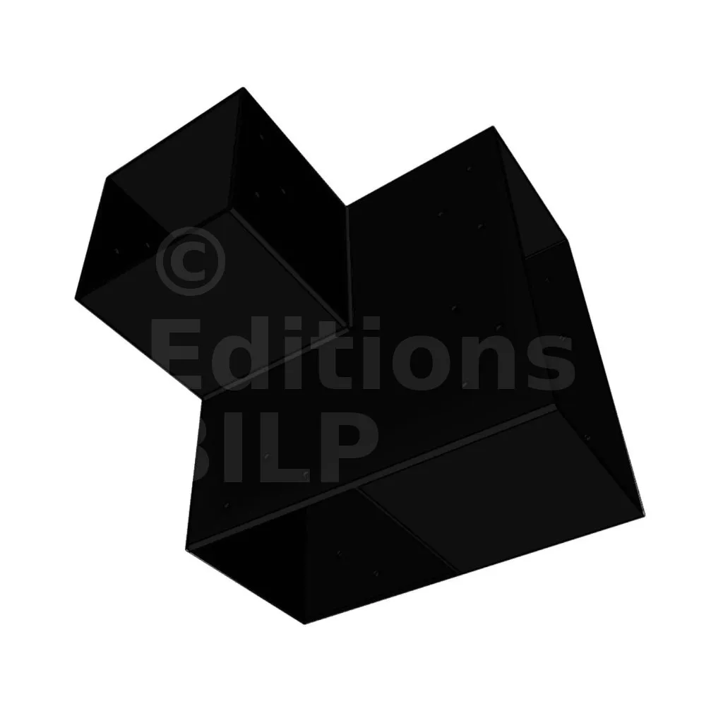 Il est utilisé dans un angle extérieur. Ce connecteur va permettre de raccorder une grosse poutre 240x120mm perpendiculairement à une poutre 120x120mm, le tout étant supporté par un poteau vertical 120x120 mm.