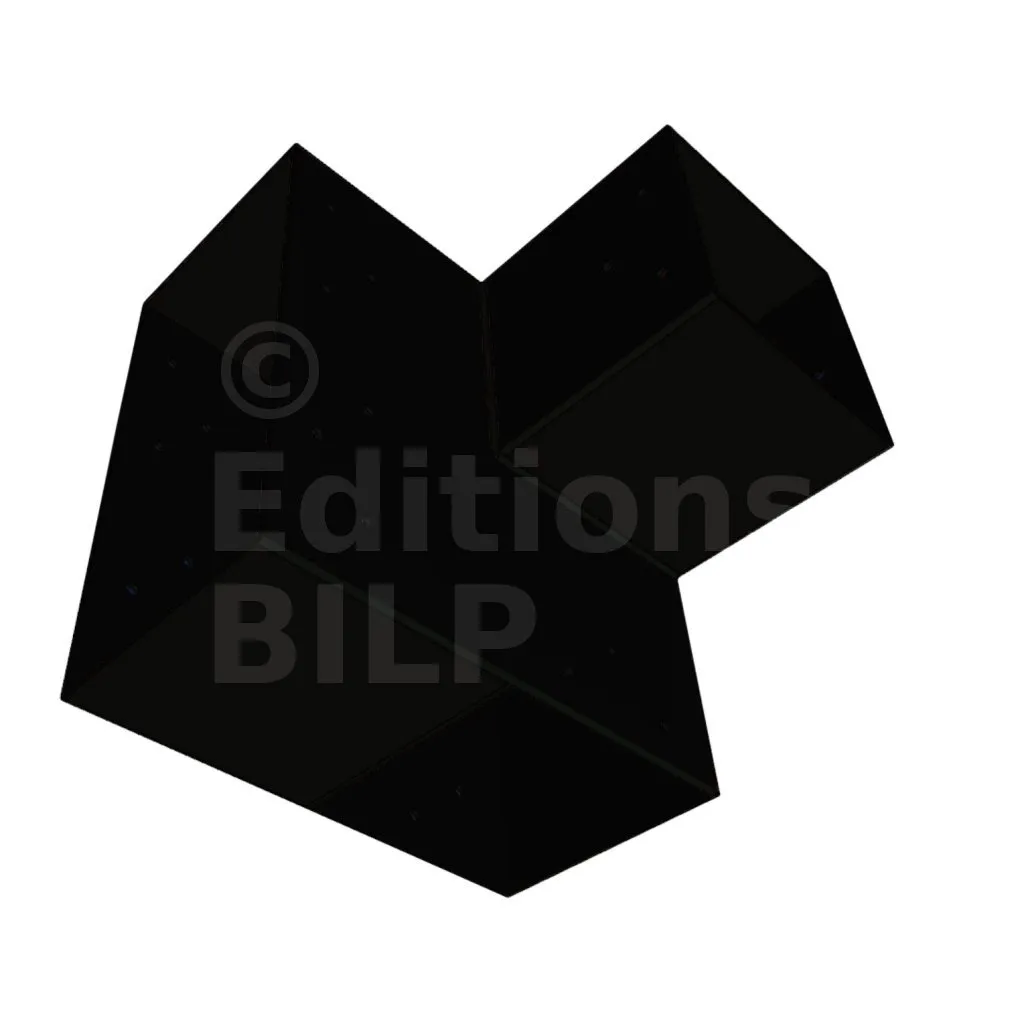 Il est utilisé dans un angle extérieur. Ce connecteur va permettre de raccorder une grosse poutre 240x120mm perpendiculairement à une poutre 120x120mm, le tout étant supporté par un poteau vertical 120x120mm.