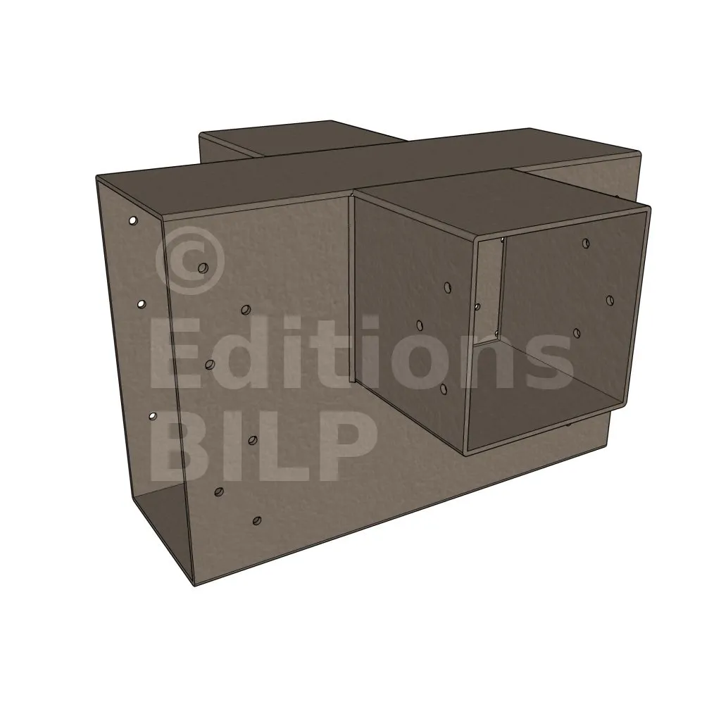 Il permet de raccorder deux poutres 120x120mm perpendiculairement à une grosse poutre 240x120mm, SANS être soutenu par un poteau vertical.