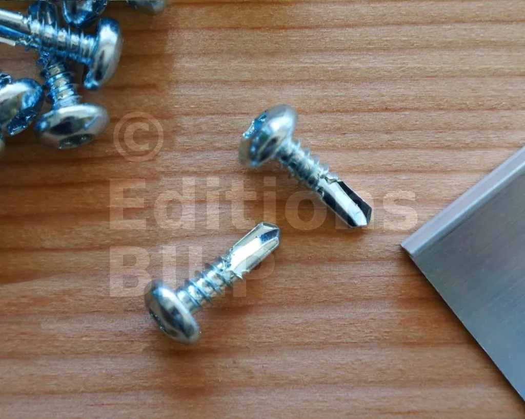 Les mécanismes du système SUNDIY sont solidement fixés à la structure (que ce soit du bois, de l’aluminium, du béton, etc.) à l’aide des clips* de fixation qui doivent être vissés au préalable. Les vis proposées ici sont spécialement conçues pour garantir une fixation efficace dans l’acier.
