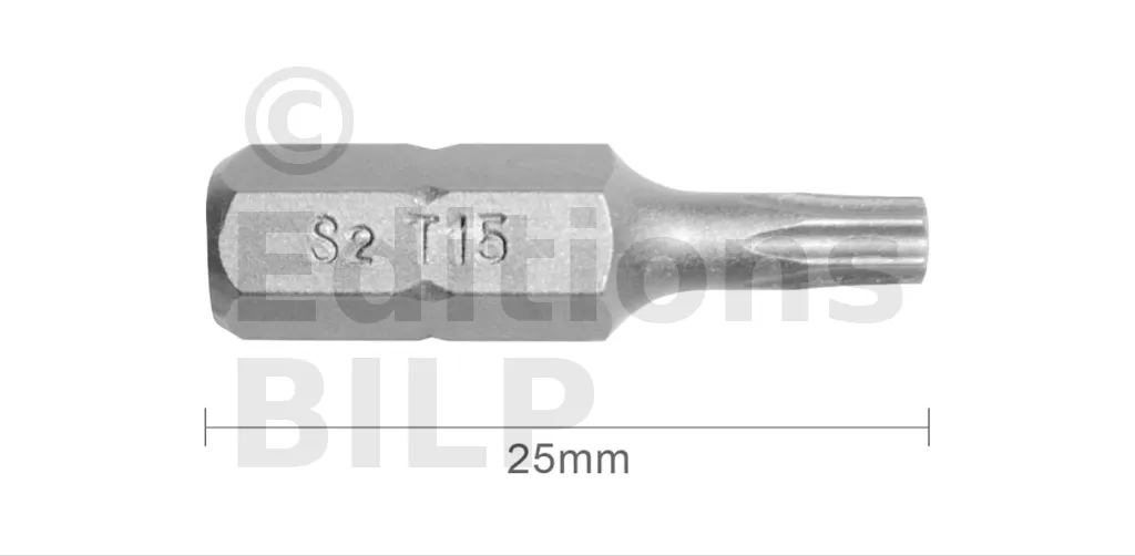 Embout T15 25mm (Qualité Professionnelle, Acier S2) - lot de 1 embout - Réf. EmboutT15_1