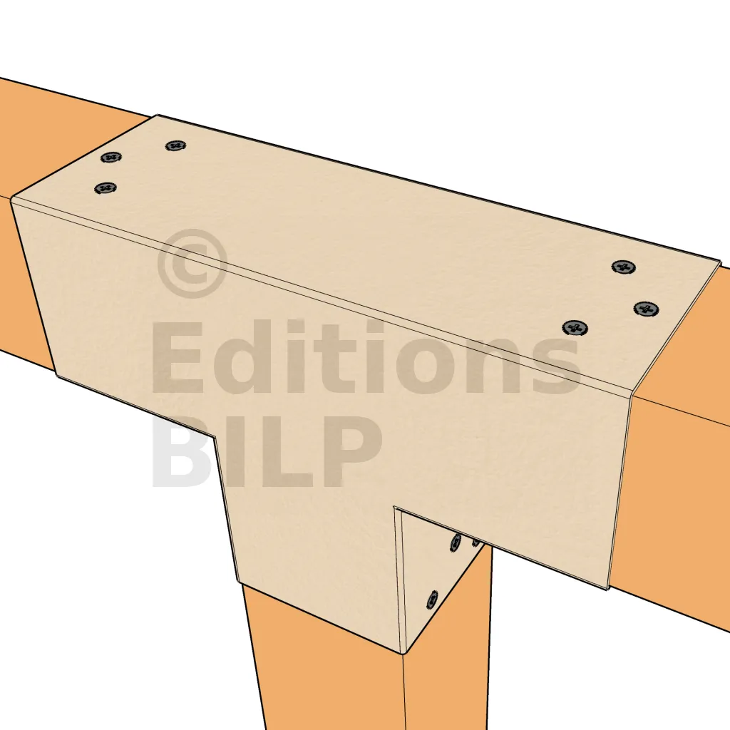 Il sert à raccorder une poutre de 90x90mm perpendiculairement à une autre poutre de 90x90mm, SANS être soutenu par un poteau vertical.