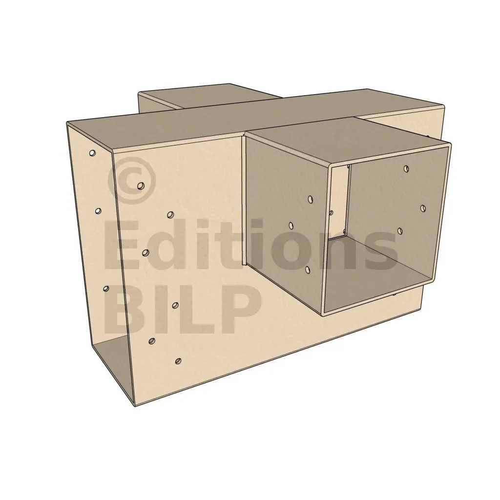 Il permet de raccorder deux poutres 120x120mm perpendiculairement à une grosse poutre 240x120mm, SANS être soutenu par un poteau vertical.