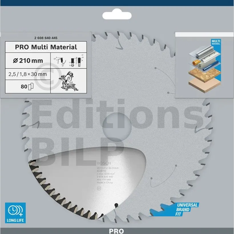 Lame de scie circulaire PRO 210 x 30 x 2.5 mm - 80 dents - Multi matériaux - Réf. 2608640445