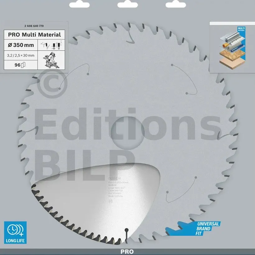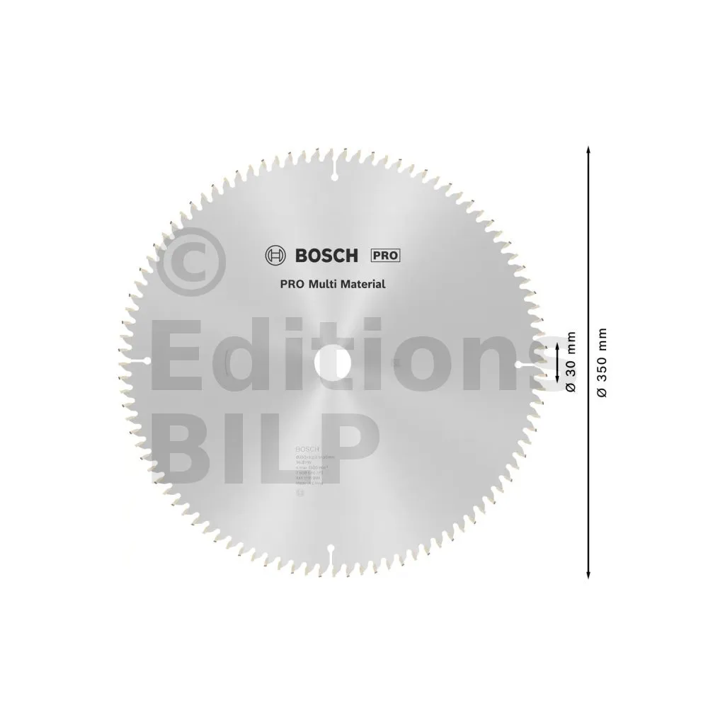Lame de scie circulaire PRO 350 x 30 x 3.2 mm - 96 dents - Multi matériaux - Réf. 2608640770