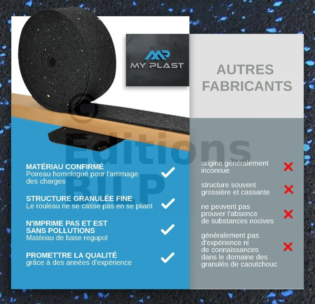 Rouleau de protection SOUS lambourde en granulé de caoutchouc – 10 m × 50 mm × 8 mm - Réf. MY-P-5000x80x8