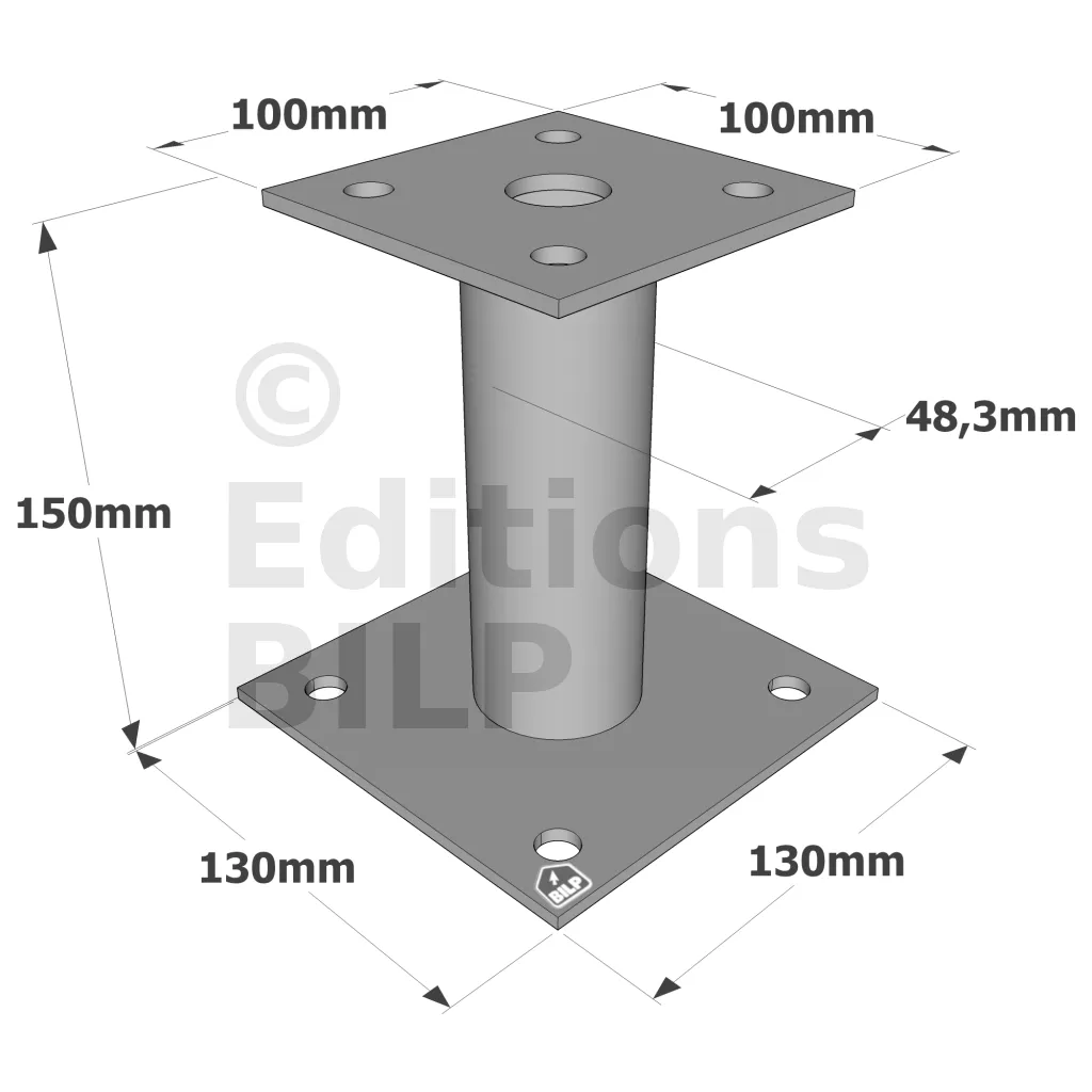 Pied de poteau fixe, corps rond, hauteur : 150 mm - Réf. PPA150