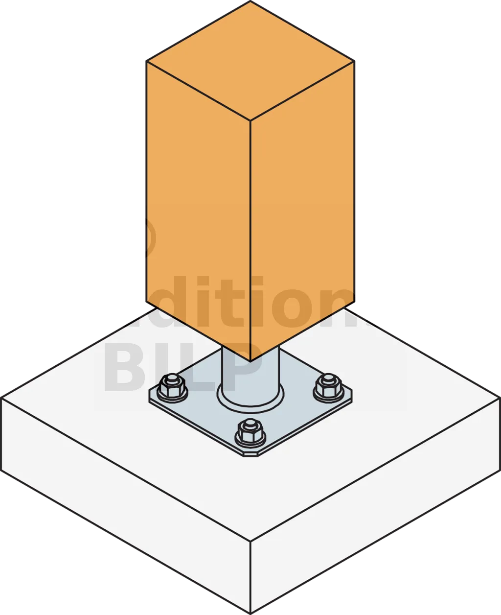 2. Fixer cette platine au poteau à l’aide de tirefonds LAG (pré-perçage nécessaire) ou vis SSH