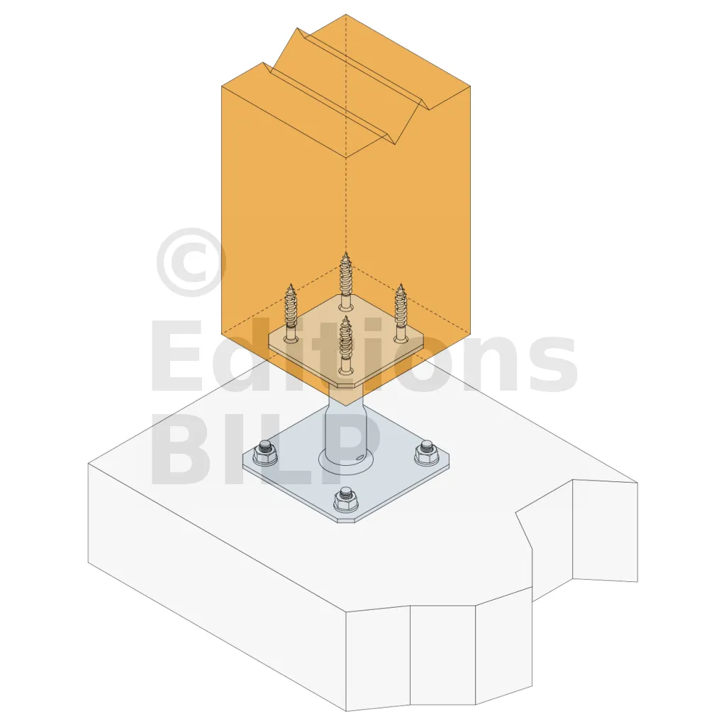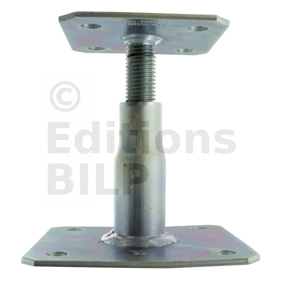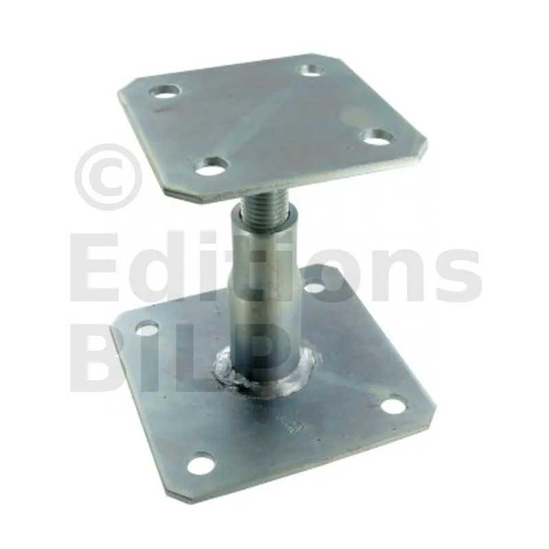 Ce modèle de pied de poteau est réglable en hauteur. Simple et rapide à installer, il peut être réglé sur le chantier.