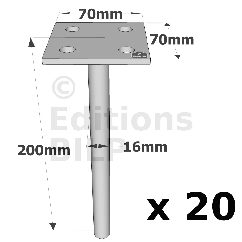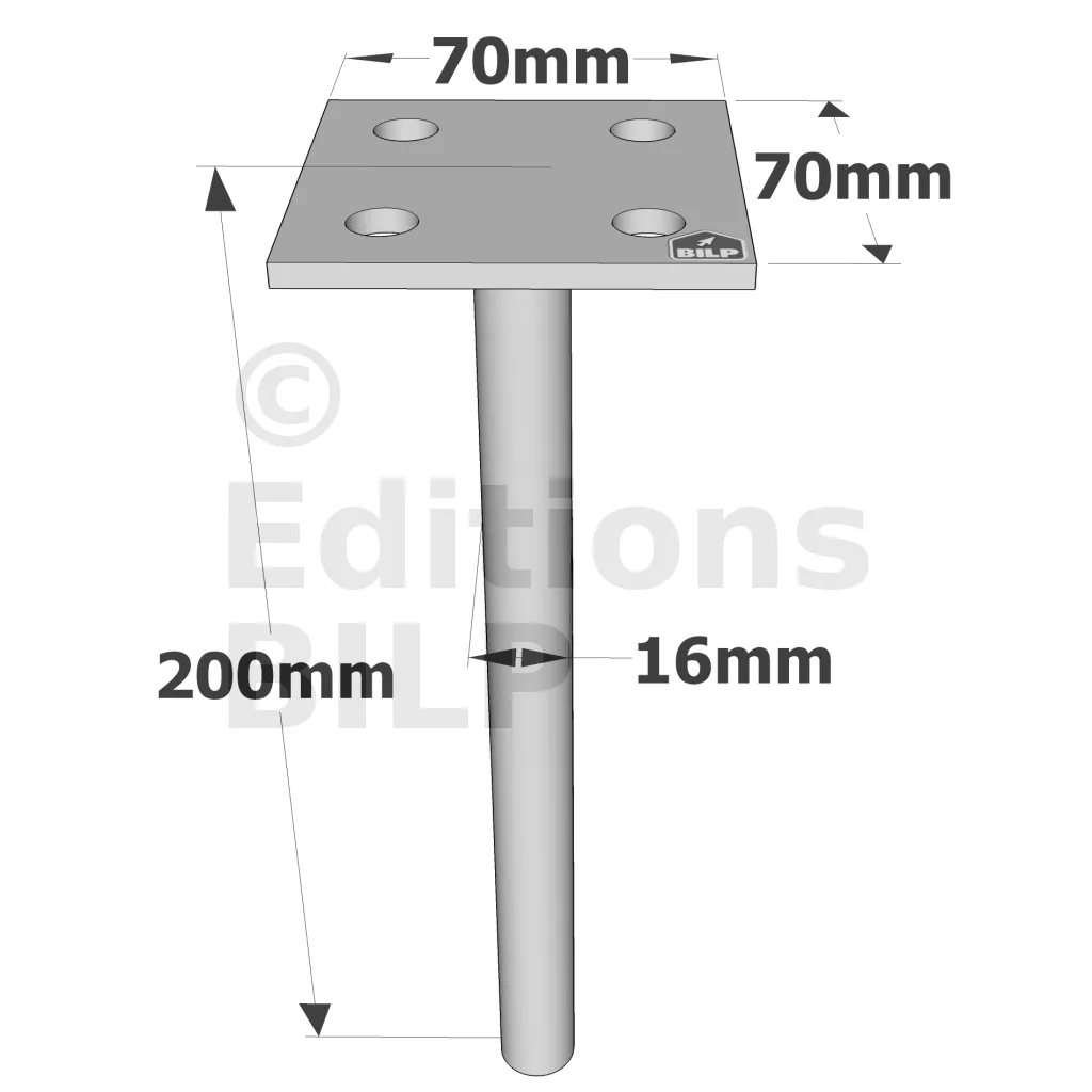 Pieds de poteau à sceller simple platine - Réf. PPSP70_20