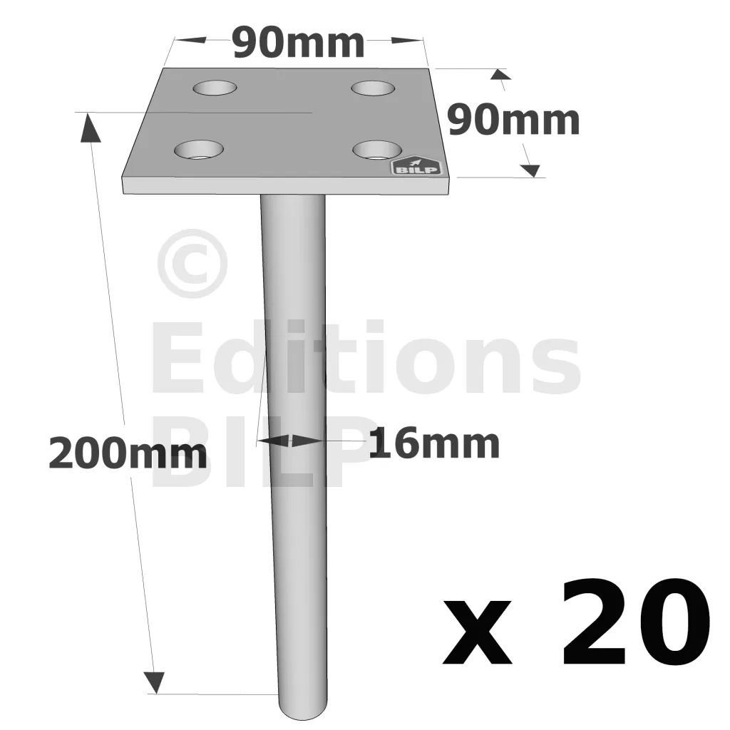 Pieds de poteau à sceller simple platine - Réf. PPSP90_20