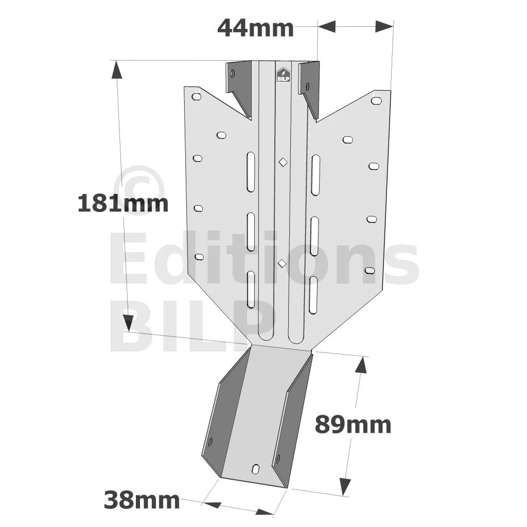 - Les trous oblongs permettent le clouage en biais si nécessaire.