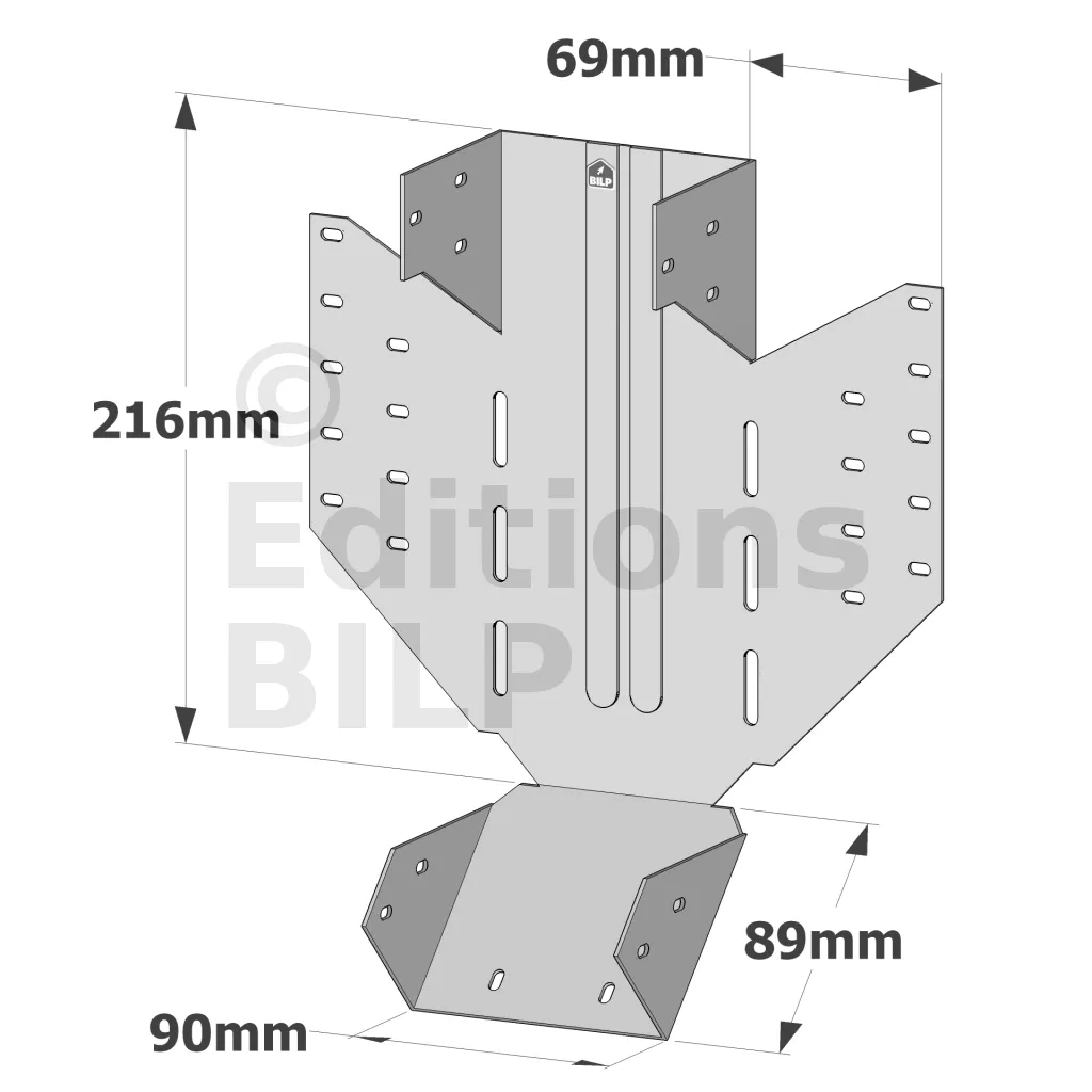 - Mise en œuvre dans les 4 dimensions : Grâce à sa conception unique, l’étrier LSSU peut être mis en oeuvre dans les quatre dimensions, offrant une adaptabilité sans précédent. Que ce soit pour des ajustements horizontaux, verticaux, ou angulaires, cet étrier garantit une solution sur mesure pour chaque configuration de structure bois.