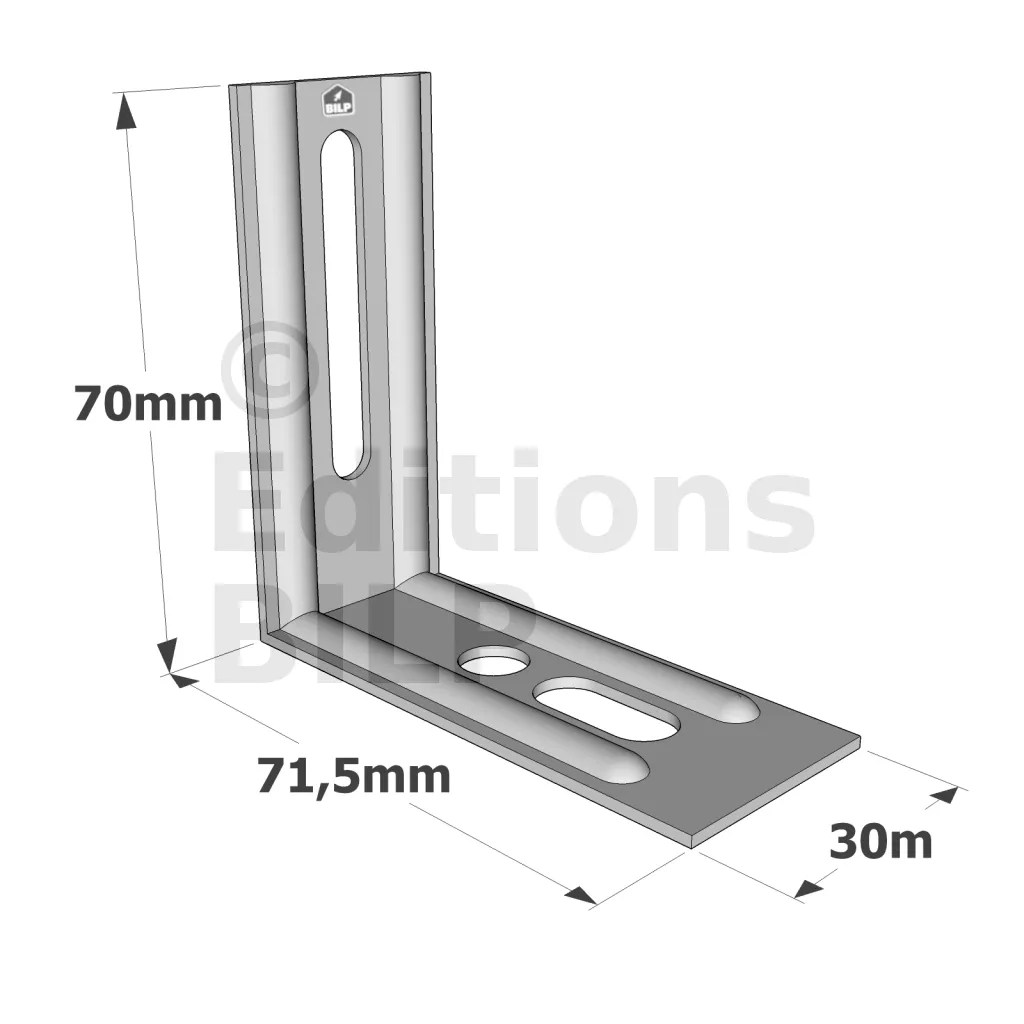 - Trous oblongs facilitant l’ajustement des assemblages,