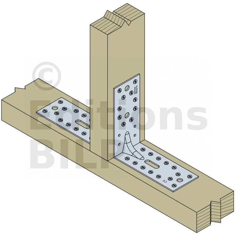 - Fixation bois/bois - type poteau/poutre2 équerres ; Aile A : 10 ; Aile B : 8 ; type : Pointes annelées CNA Ø4.0x35 ou Ø4.0x50 mm