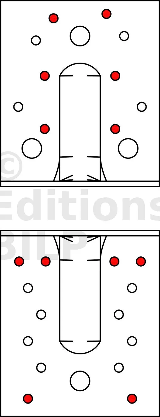 - Fixation BOIS/BOIS - clouage totalAile A : 4 ; Aile B : 6 ; type : Pointes annelées CNA Ø4.0x35 ou Ø4.0x40 ou Ø4.0x50 ou Ø4.0x60 mm, Vis CSA Ø5.0x35 ou CSA Ø5.0x40