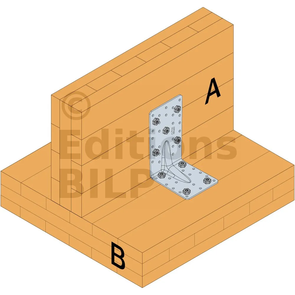 - Fixation BOIS/support rigide - clouage total2 équerres Aile A : 24 CNA Ø4.0x35 ou Ø4.0x50 mm ou Aile B : 4Ø10 (boulon ou tirefond)