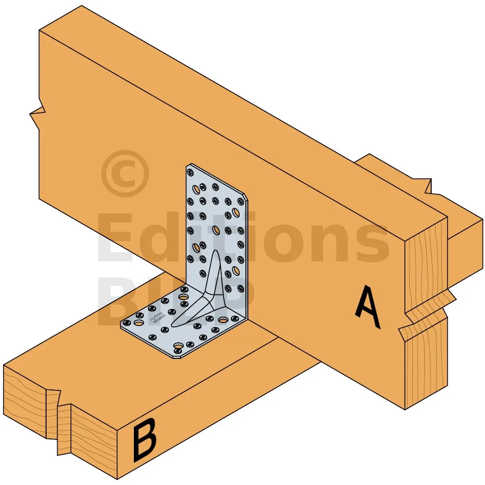 - Fixation BOIS/support rigide - clouage total2 équerres Aile A : 24 CNA Ø4.0x35 ou Ø4.0x50 mm ou Aile B : 4Ø10 (boulon ou tirefond)