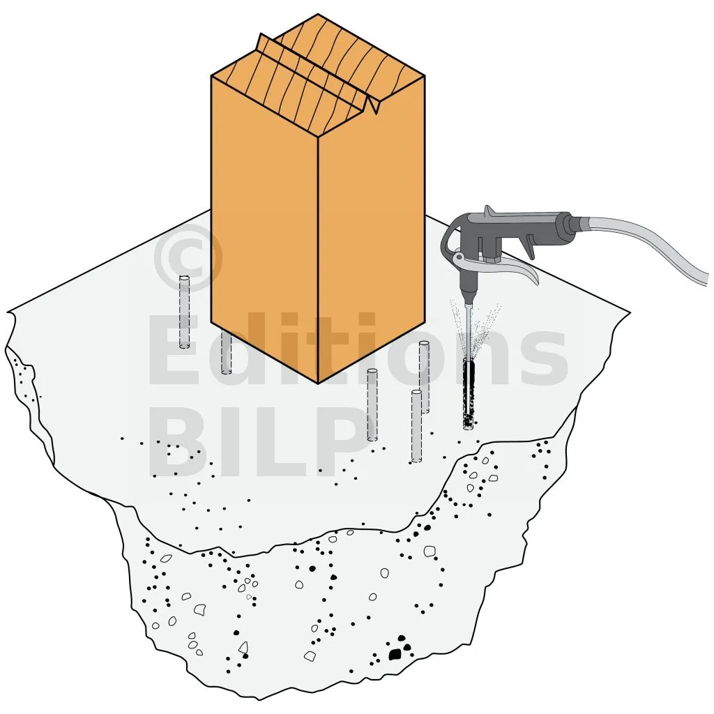 - Ancrage chimique : résine AT-HP + Tige filetée LMAS M10-120/25.