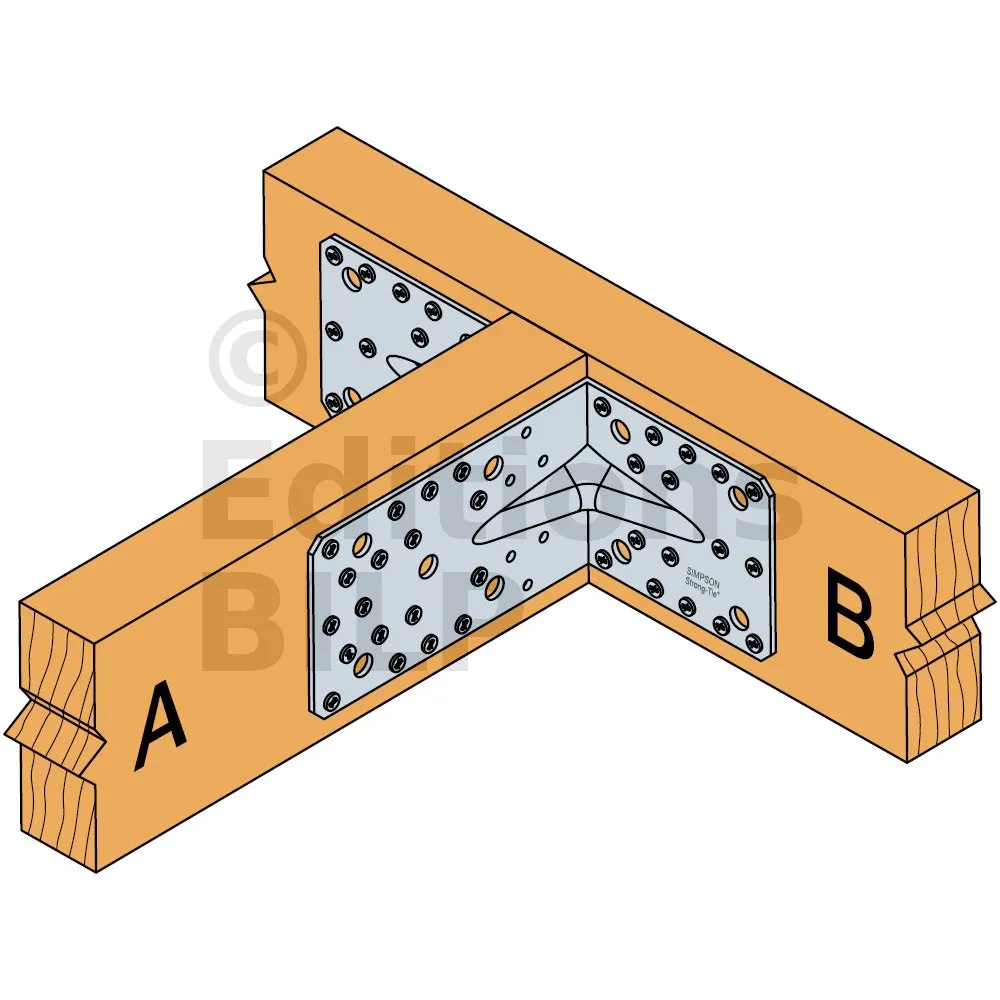 - Fixation poutre CLT sur poutre CLT2 équerres Aile A : 5xSSH10x80 ou Aile B : 4xSSH10x80