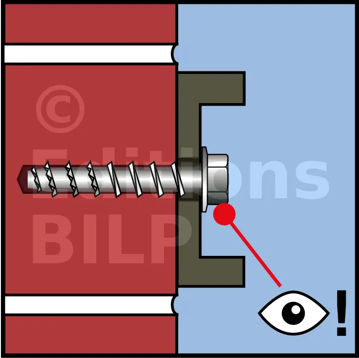 - Rondelle large intégrée pour un plaquage parfait de la pièce à fixer.