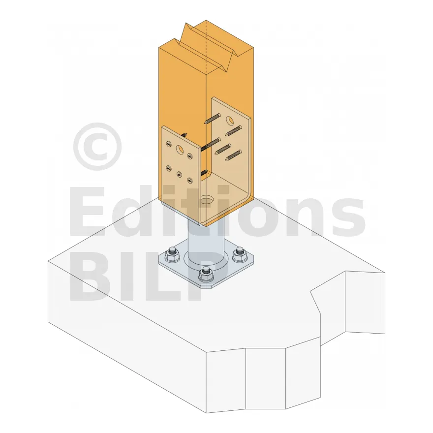 - Connexion bois sur support rigideSur poteau : 10xCNA4.0x40 Sur béton : 4Ø10