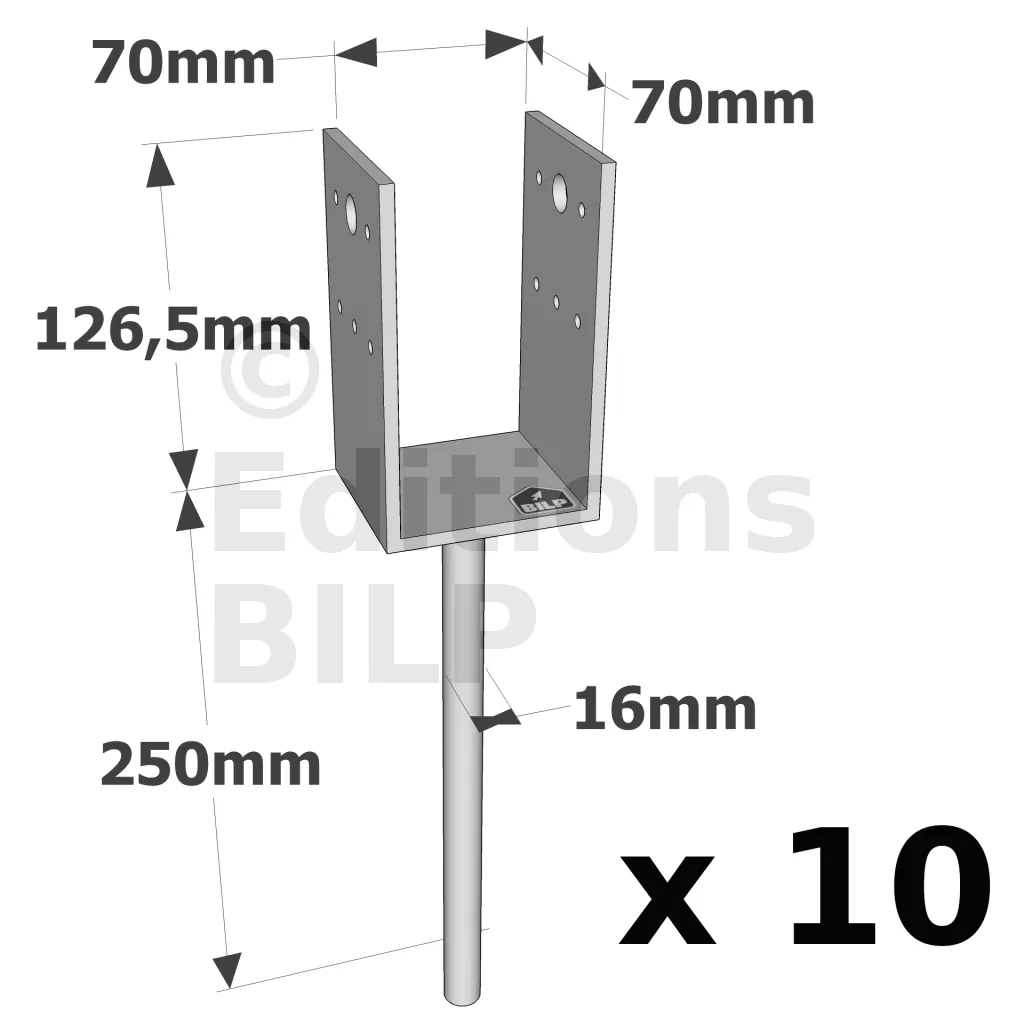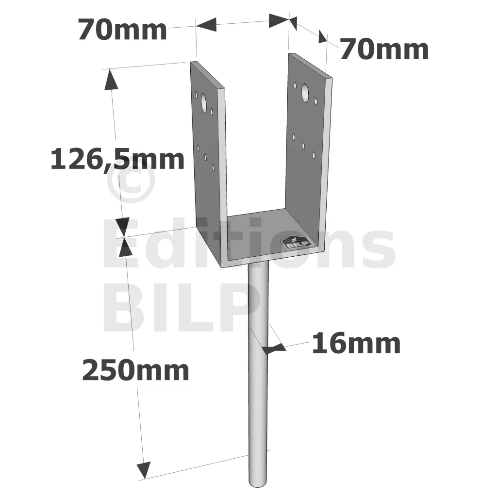 Pieds de poteau en U à sceller - Réf. PPD70/70G_10