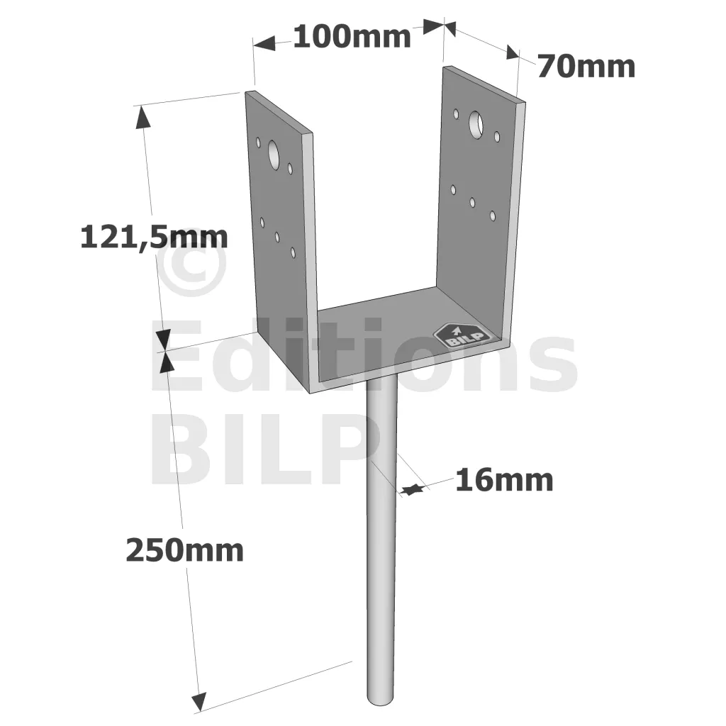 Pieds de poteau en U à sceller - Réf. PPD100/70G