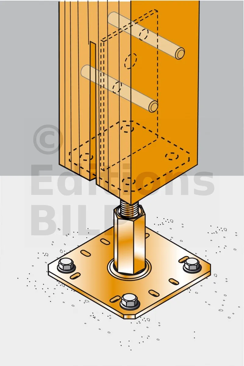 - Connexion bois sur support rigideSur poteau : 2 STD12 ; sur béton : 4Ø10 (goujons WA M10 ; tige filetée M10) ; sur acier : boulons