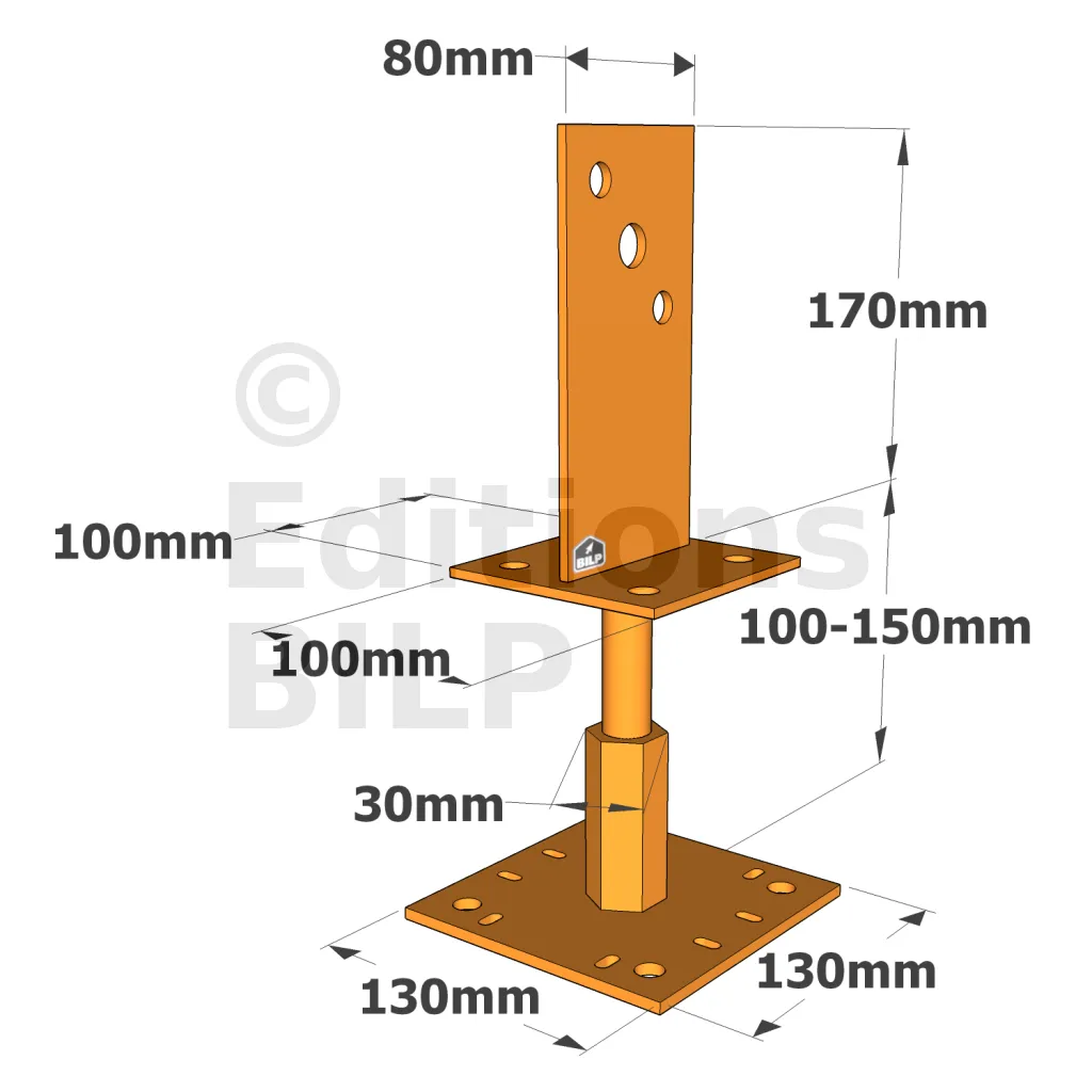 - Porteur : Bois, béton, acier (poteau 200 x 200 maxi).