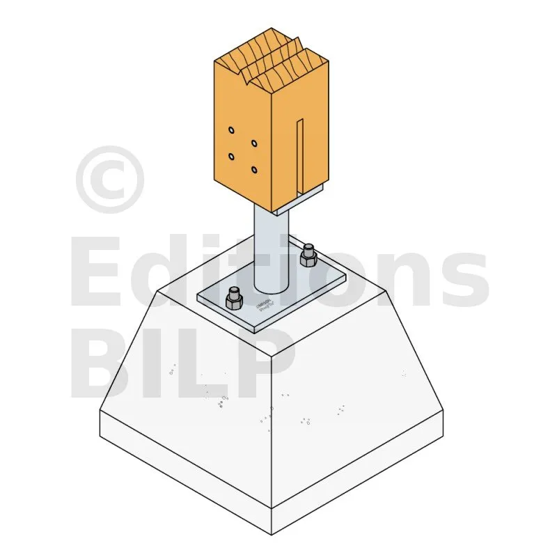 * Référez-vous à la gamme d’ancrage Simpson Strong-Tie pour sélectionner l’ancrage adapté. Les solutions standards sont BOAXII, SET-XP, WA, AT-HP, à choisir en fonction du type de béton, de l’entraxe et des distances aux bords.