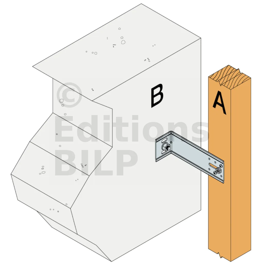 1. Fixation des équerres : la fixation sur le porteur béton s’effectue avec un ancrage de ∅8 placé dans le trou oblong le plus haut.