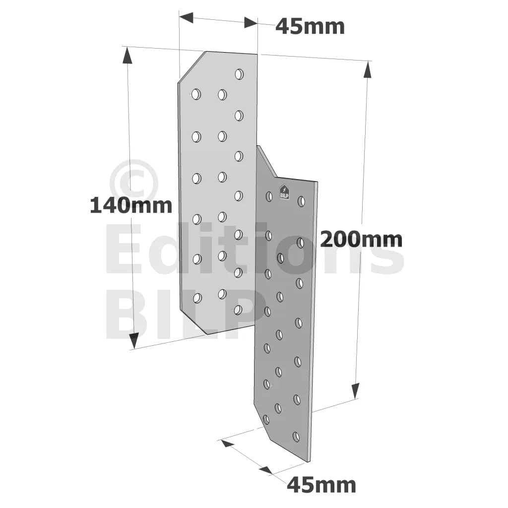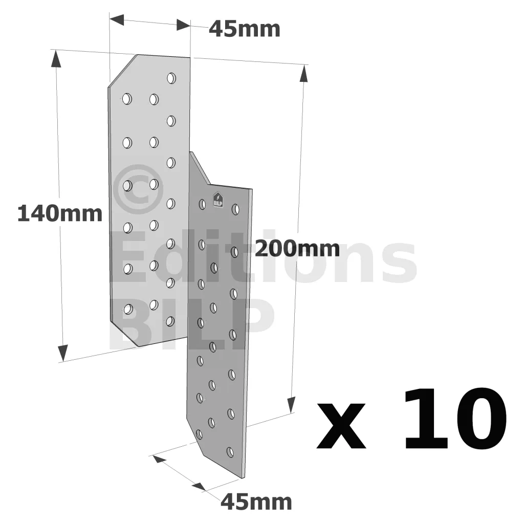 Patte de solivage DROITE - 45x200x2mm - Réf. PSD200/45/2_10