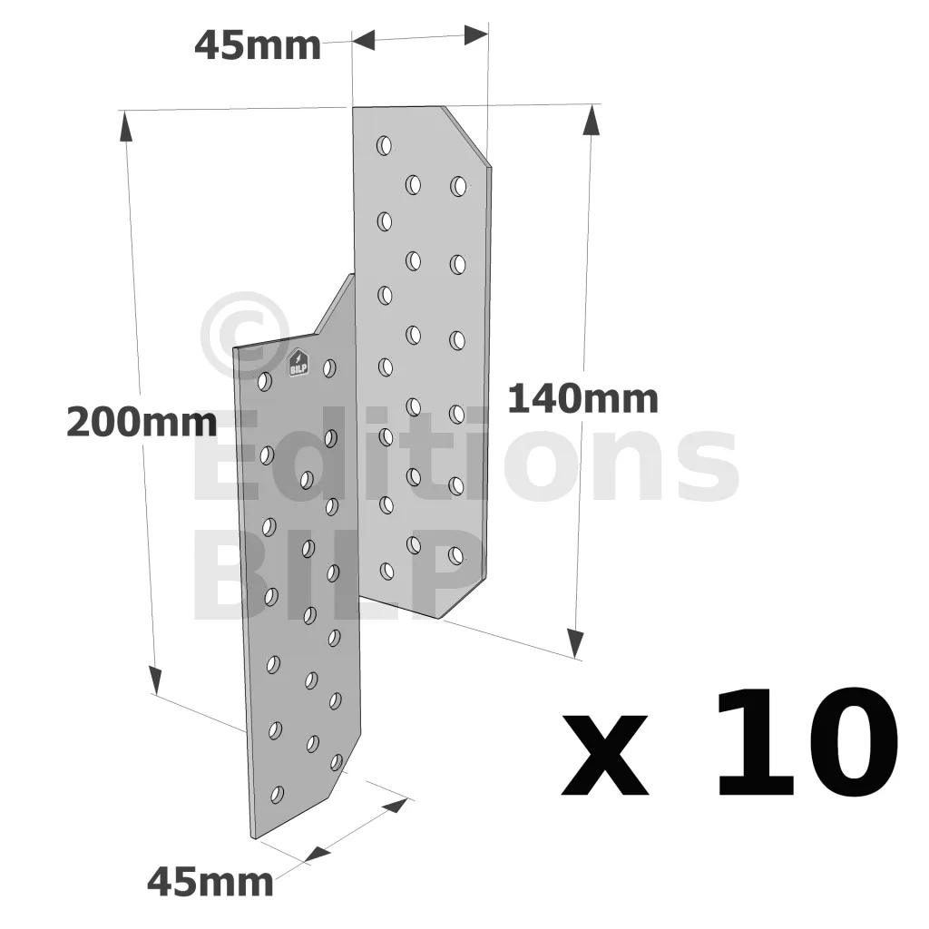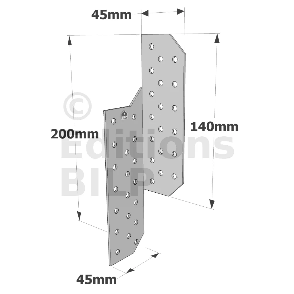Patte de solivage GAUCHE - 45x200x2mm - Réf. PSG200/45/2_10
