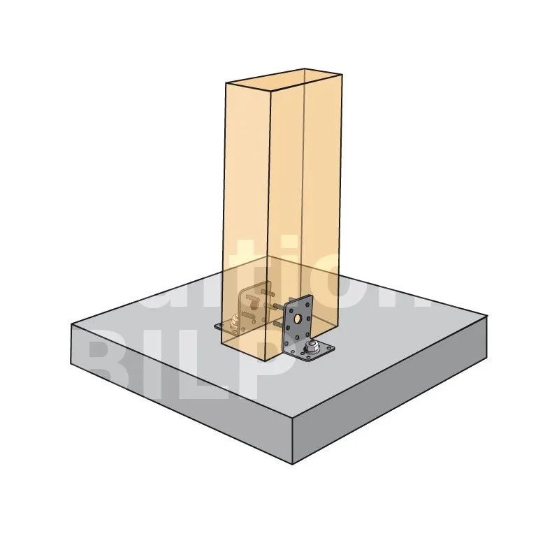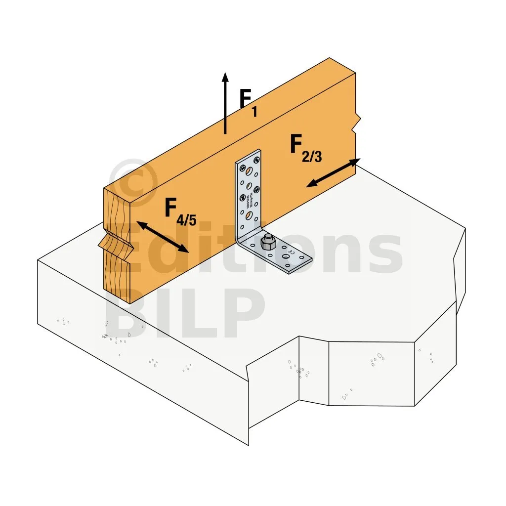 - Fixation bois/support rigide - type poutre/support rigideAile B : 7 - type : CNA Ø4.0x35 ou Ø4.0x50 mm ; Aile C : 1 - type : WA M10-78/5 - Assemblage avec 2 équerres