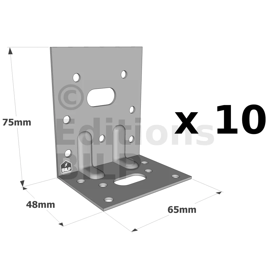 Équerres renforcées CLASSIQUES asymétriques pour le BOIS et le BETON - Réf. E5/2_10