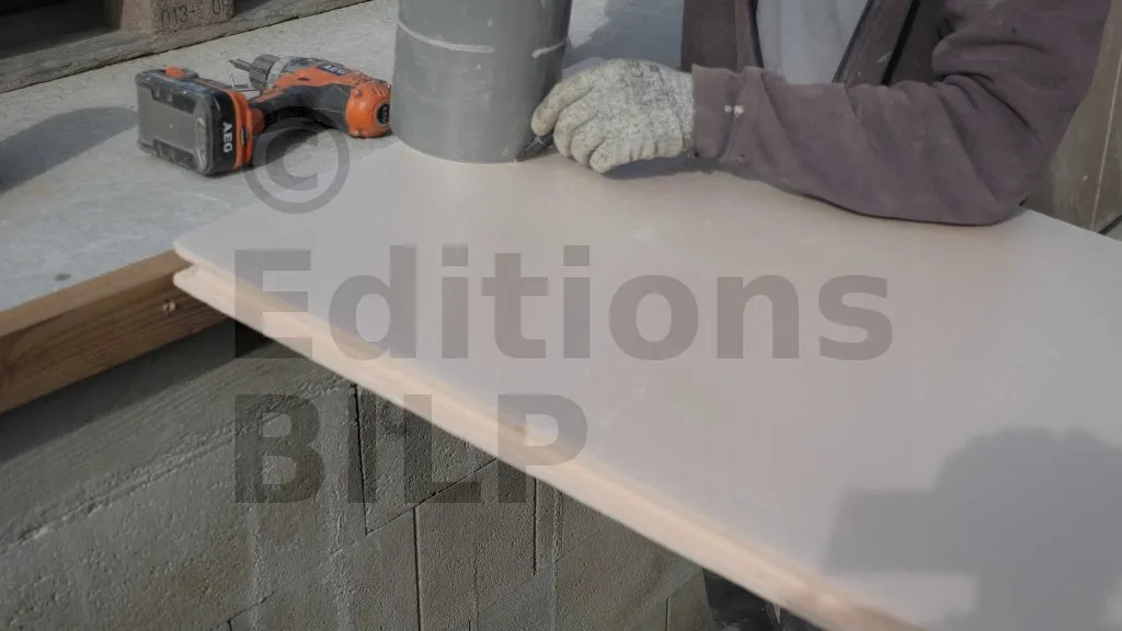Une fois les marquages réalisés, retirer les plaques d’isolant. Puis, renforcez les tracés afin d’obtenir une coupe aussi précise que possible en projetant la forme du tuyau sur les panneaux au niveau des marquages. Enfin, effectuez les découpes à l’aide de fil à chauffer.