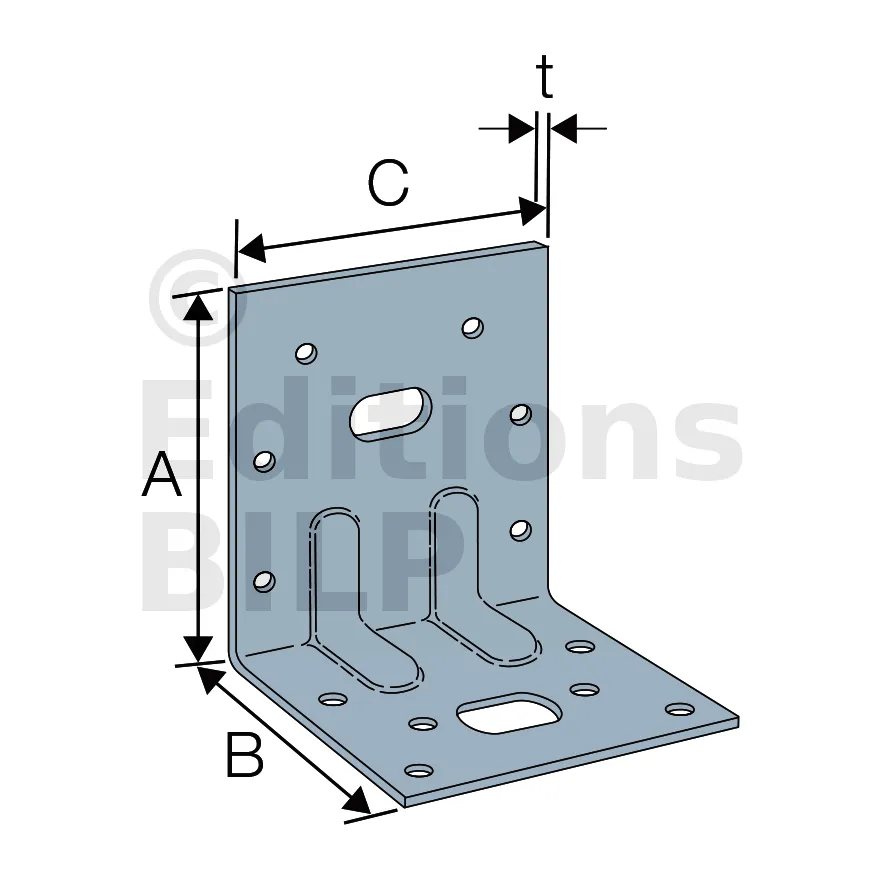 Équerres renforcées CLASSIQUES asymétriques pour le BOIS et le BETON - Réf. E5/2_50